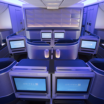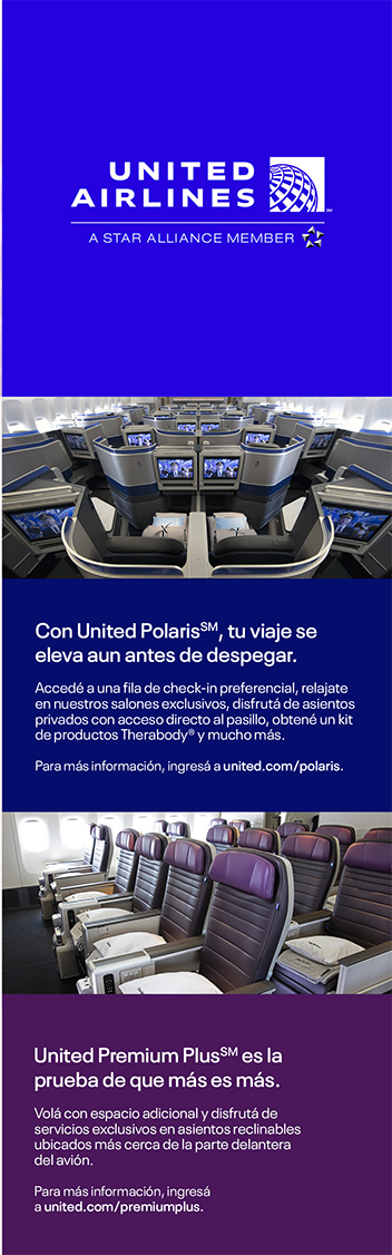 • United Premium PlusSM: Los asientos ubicados cerca de la parte delantera del avión ofrecen más espacio, comodidad y servicios exclusivos, incluyendo mayor espacio para las piernas y asientos reclinables.